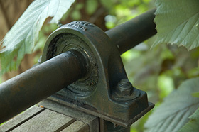 Ash wood, oak wood, steel, transmission belts, ball bearings, beeswax, Hunningsche watermill in Vreden, Münsterland region, heritage association